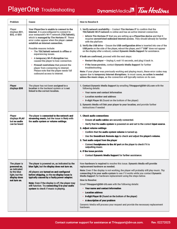 • If you see an error code such as E01 or E02 – The player may be temporarily offline. Wait a few minutes and check again.